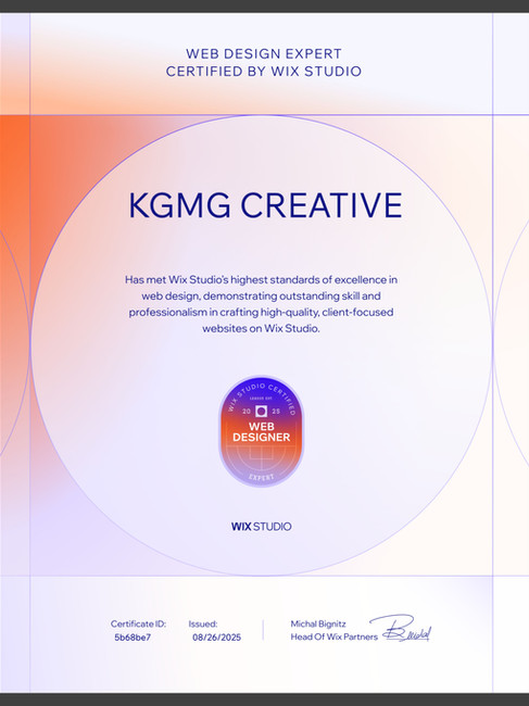 This certification reflects advanced proficiency in both Web Design and Wix Studio, currently awarded to under 30 professionals across Australia (and just 700 globally). The KGMG body of work has been hand-picked to showcase examples of User Experience (UX), design, functionality, innovation and best practice in the web design industry.